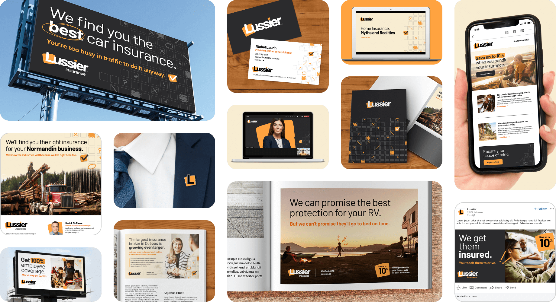 We crafted an experience vision centered around 'We do it for you,' and I developed a comprehensive visual language to bring this concept to life, illustrating how Lussier brokers work behind the scenes to narrow down insurance options and find the best solutions for their clients.